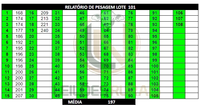 101 MACHOS ANELORADOS E CRUZADOS DE 10 A 12 MESES. SADIOS, COM BOM GANHO COMPENSATÓRIO. LOTE HOMOGENEO. PESADOS NO BALANÇÃO, NO PERIODO DA TARDE. ACESSO A CARRETA ALTA.