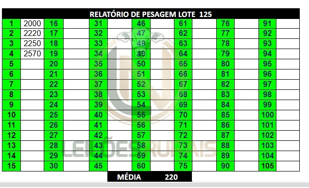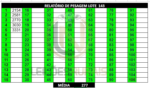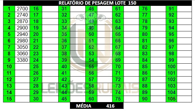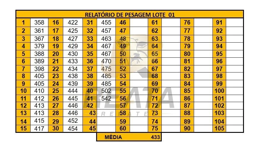 51 FÊMEAS DE 12 A 15 MESES. CONTENDO NO LOTE 50 NELORE E 1 NELORE VARIEDADE DE PELAGEM. LOTE HOMOGÊNEO, SADIO, COURO SOLTO, BOM PADRÃO RACIAL, DE BOA CONFORMAÇÃO COM BOM GANHO COMPENSATÓRIO. TODAS CRIOULAS. PESADAS NO PERÍODO DA MANHÃ, ACESSO CARRETA ALTA.