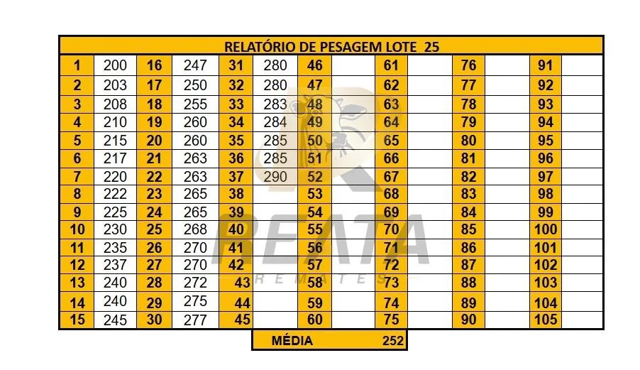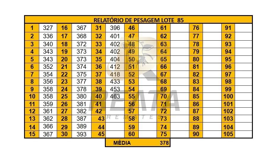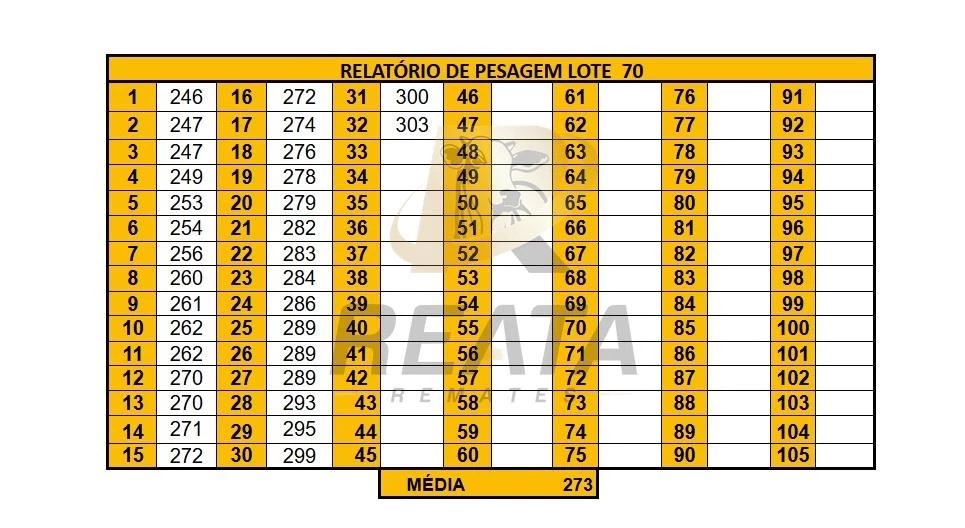 71 FÊMEAS DE 15 A 18 MESES. CONTENDO NO LOTE 69 NELORE E 2 NELORE VARIEDADE DE PELAGEM. LOTE HOMOGÊNEO, SADIO, COURO SOLTO, BOM PADRÃO RACIAL, DE BOA CONFORMAÇÃO COM BOM GANHO COMPENSATÓRIO. TODAS CRIOULAS. PESADAS NO PERÍODO DA MANHÃ, ACESSO CARRETA ALTA.